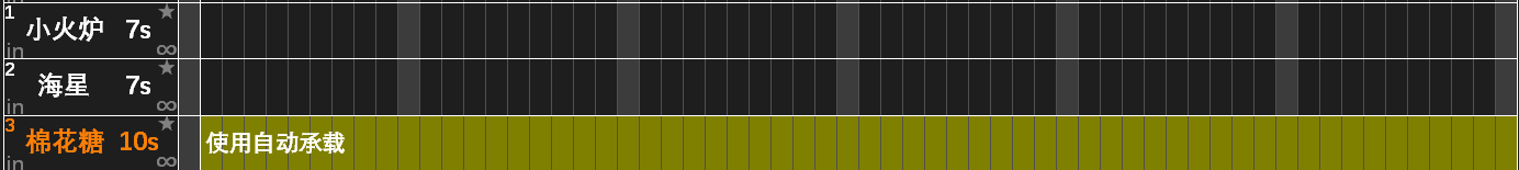- 轨道内置了所有常驻地图的承载卡轨道(包括补云洞)。用户无需设置承载卡阵型,只需在第0波轨道编辑界面按住Ctrl单击承载卡编号,即可使用自动承载(如下图)。使用自动承载的轨道需要用高级任务执行才能生效。