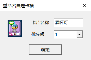 - 执行前需用用户参数\综合截图工具.exe的自定卡槽模块截取需携带的卡片,截图命名需与轨道中的卡片名称保持一致。同一卡片名称可以设置多个优先级,范围为-9~9,数字越大越优先携带。例如存在酒杯灯_1和酒杯灯_2两张卡槽截图时(如下图),执行时优先带酒杯灯_2,找不到酒杯灯_2则带酒杯灯_1。
