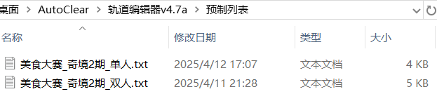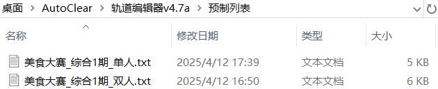 - 如需修改美食大赛预制方案,请在预制列表文件夹中找到本期大赛的预制列表,使用与 3.2.10 公会与情侣任务 相同的方法进行编辑。