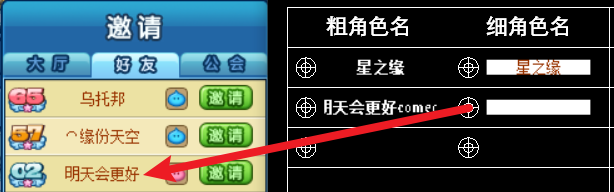 - 邀请列表与好友列表角色名显示不一致(如下图)。