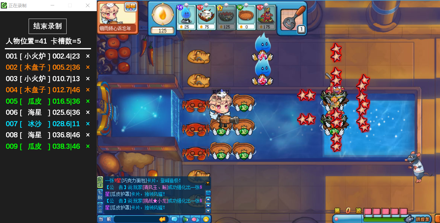 按钮,按提示将鼠标放在游戏区域内,软件将自动点击开始并开始录制。玩家每一次放卡都会记录在左侧窗口中,格式为: