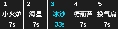- 使用的卡组中存在空卡槽时,软件将按照轨道中的卡组自动带卡。例如下列卡组第5槽留空,则执行轨道1时自动带换气扇,而执行轨道2时自动带酒杯灯。