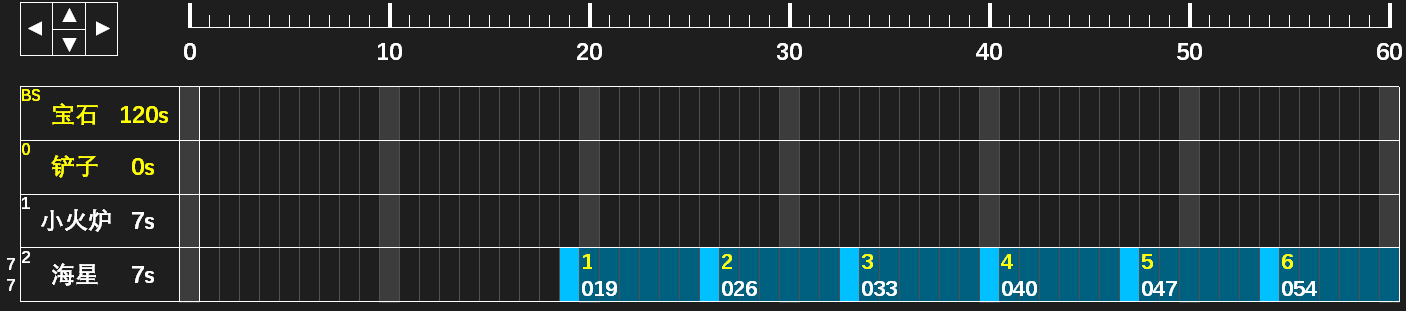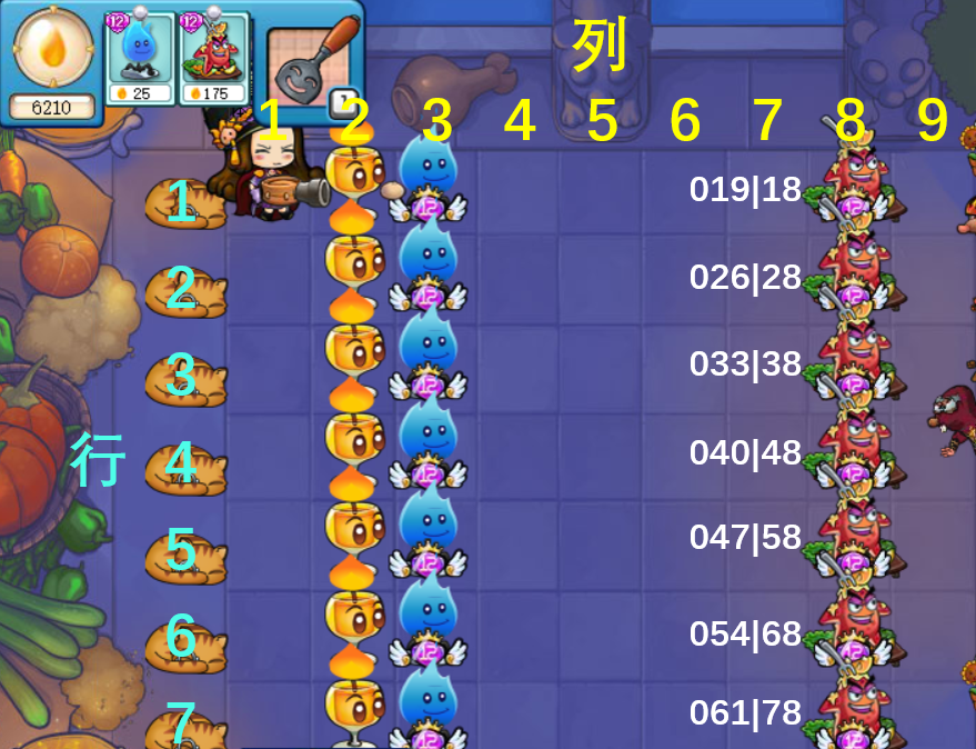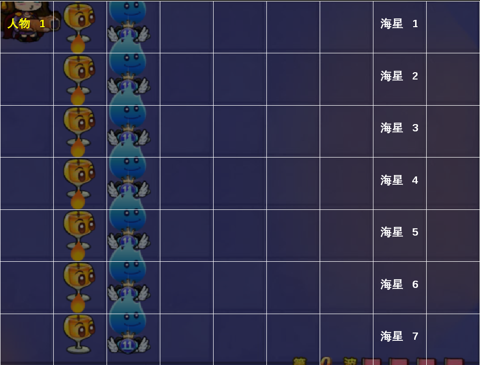 执行效果为在第 8 列放一列海星,各海星与轨道记录的对应关系如左图所示:
