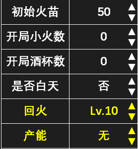 单击左下角“生产信息”进入编辑界面,如右图所示。此处填写关卡自带生产和产火宝石,方便软件计算火苗。开局小火/酒杯按整局存在计算,若1P携带了初始火、初始灯卡片,则按照实际放置数量和铲除时间来计算产火,无视填写的数量。