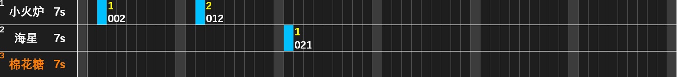 - 最速优化:轨道区全空时,选中某张卡后点击“自动布轨”,程序将自动安排生产卡,使得被选中的卡最快放下。在上面的例子中,使用最速优化可以在第21秒就放下海星: