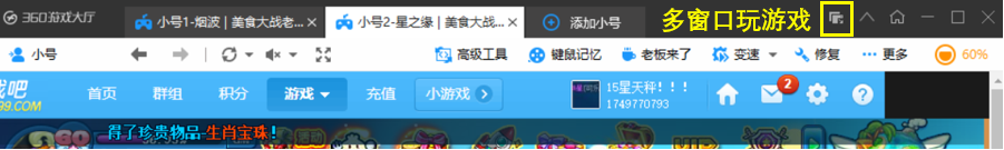 - 双人刷图时所有放卡账号必须保持可见。如果两个号都放卡,需点击大厅右上角多窗口玩游戏将两个窗口分别显示。启动后,点击 隐藏 1 和 隐藏 2 可分别隐藏两个窗口。