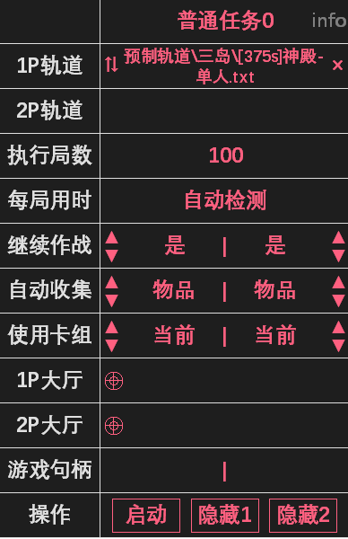- 使用预制轨道或自编轨道刷图时,各设置项说明如下(1P 为房主):