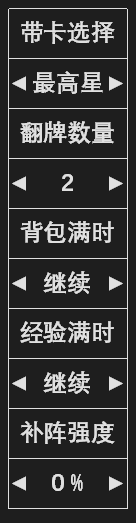 | 补阵强度:决定补阵的方式。0%只补空位,100%遍历整个阵型。推荐设为 0%(性能最优),若出现漏放卡片,则可以适当调高补阵强度。 |
