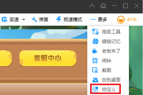 开局加速一小段时间可以减少出怪间隔,显著提高通关速度。使用加速前需要在游戏大厅中显示加速按钮:依次点击更多-自定义(左图),在自定义设置中只勾选加速(右图),点击确定即可。